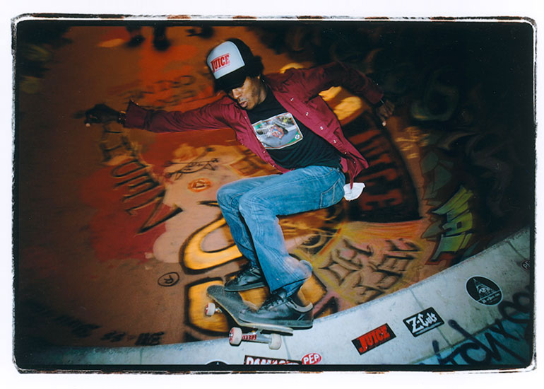 Los Angeles based urban artist, Steve Martinez, is best known for capturing the frenetic West Coast lifestyles through the lens of a camera or the bristles of a brush. Seizing the raw energy of everything from skateboarding to punk music to the hard core lowrider scene, Steve brings these fringe elements to life like no one else. When he's not artistically enhancing the city of angels he can be found working behind the scenes of Playboy Magazine.